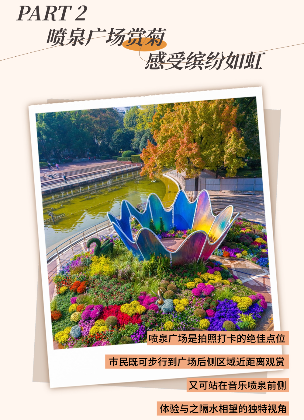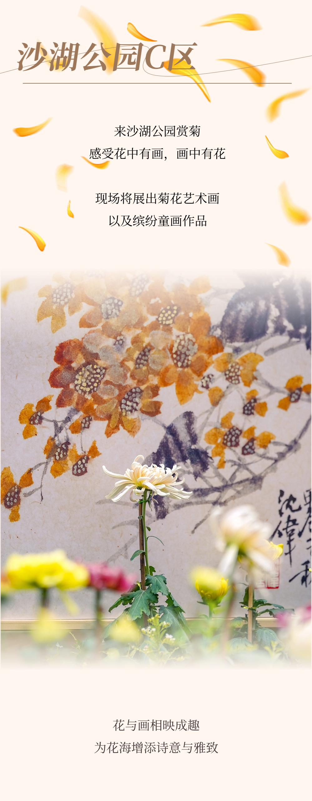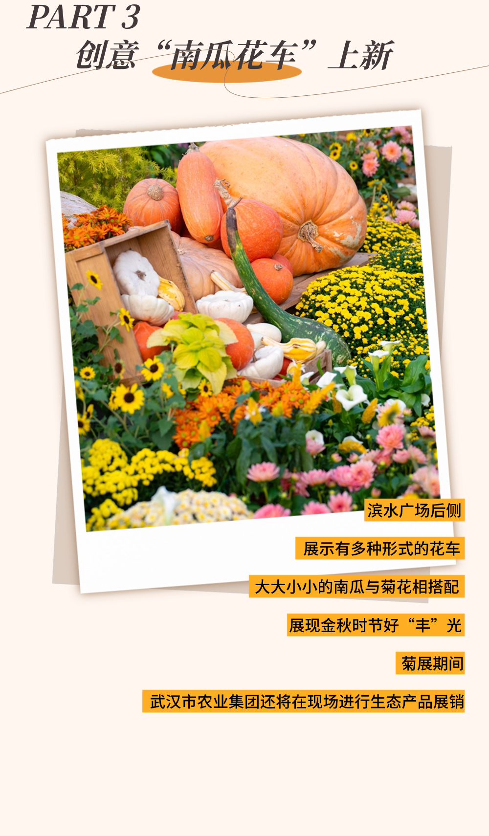 本届金秋菊展,沙湖公园C区、中山公园、汉口江滩风帆广场三大主展区颜值超高,各具特色。