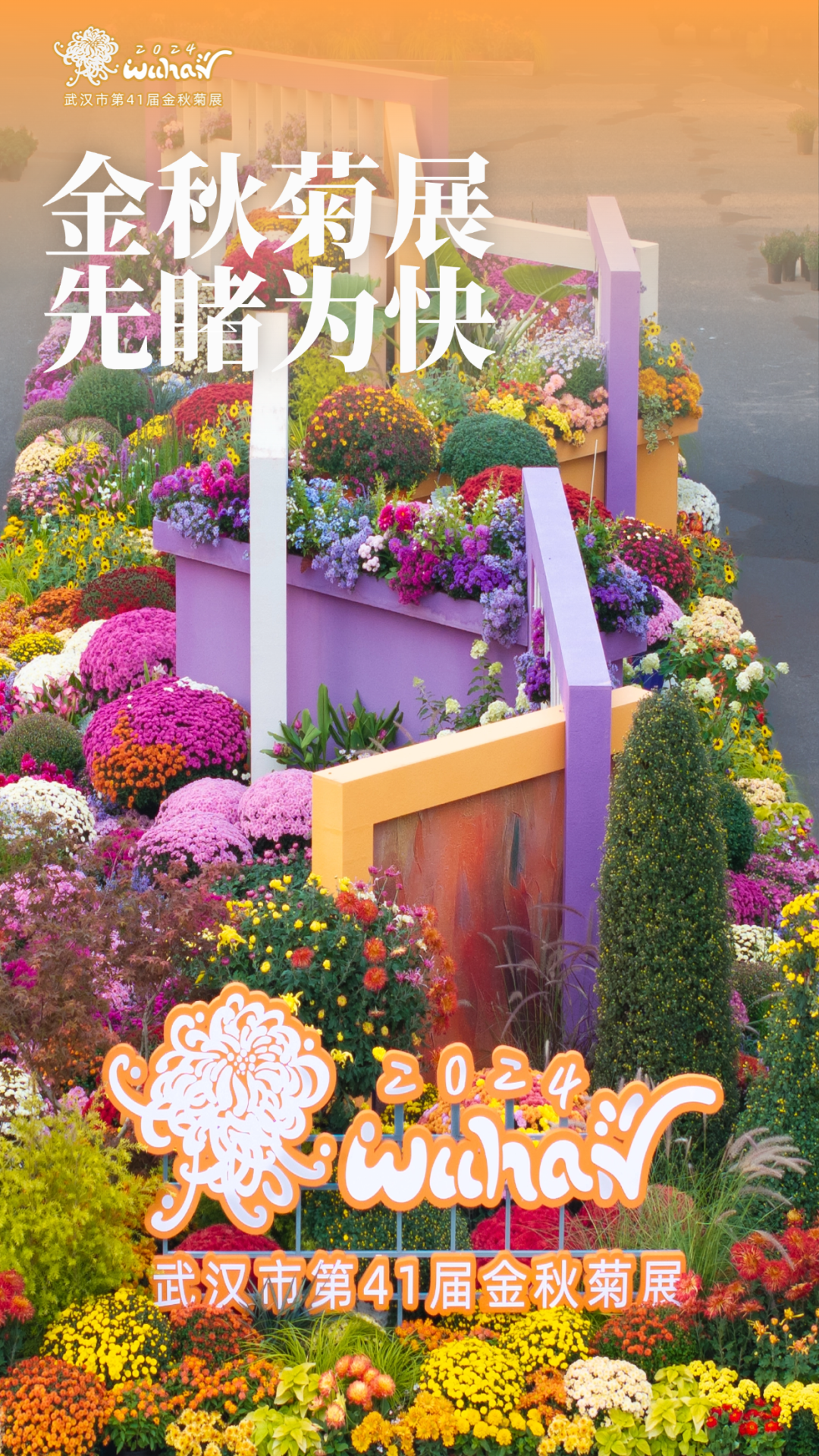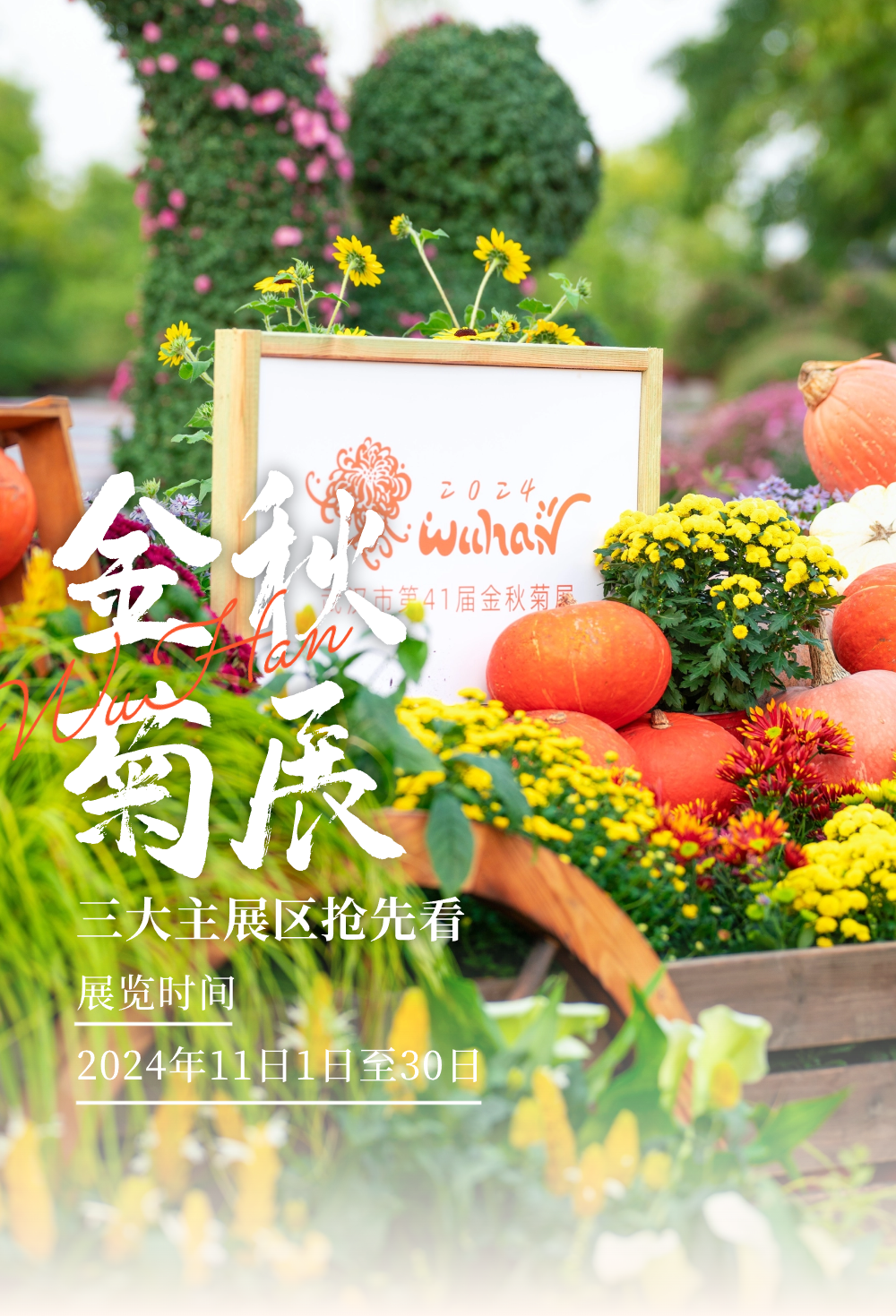 11月1日,武汉市第41届金秋菊展即将启幕,上千个品种、80万盆菊花绚烂绽放,邀你共赴秋日花海。