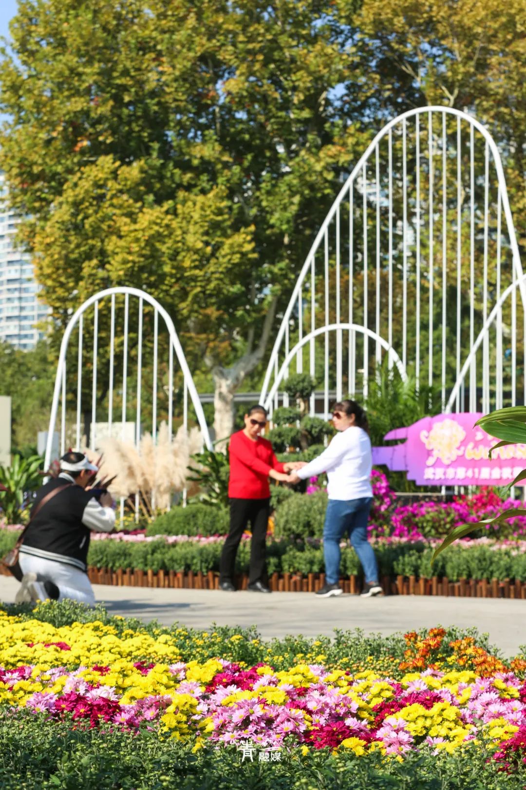 来自武汉科技大学、中韩(武汉)石油化工有限公司、中国一冶集团有限公司、国能长源武汉青山热电有限公司、中冶武勘工程技术有限公司、武汉钢铁有限公司、武汉船用机械有限责任公司、中国冶金地质总局中南局等社会单位打造的菊艺小品,环绕在主景四周,弥漫着浓郁的菊韵文化,昭示着新时代建设者的责任与担当。
