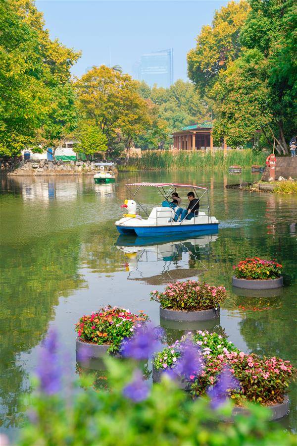 中山公园展区可乘游船赏花。通讯员 陶进 摄