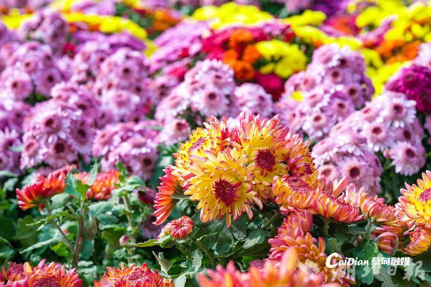 走进蔡甸广场,仿佛置身于一片花的海洋。春日剑山、霜满天、麦浪、凤凰振羽、千头菊黄……近百种菊花交相辉映,五彩斑斓。