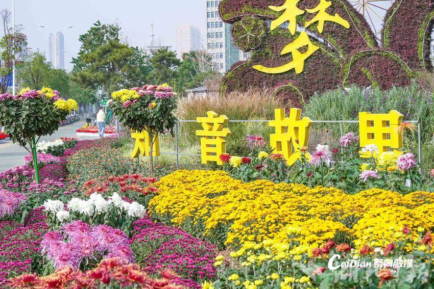 近三万盆菊花竞相绽放,花型各异、色彩缤纷宛如一幅绚丽画卷。秋风轻拂,树叶沙沙作响,菊花花瓣随风摇曳发出清脆之声,带来多重感官享受。