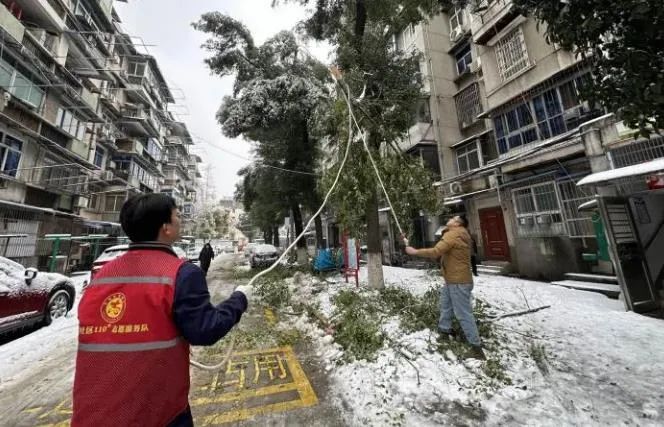 今年年初,武汉市遭遇雨雪冰冻天气,对社区居民的出行和生活保障都带来了很大的困扰。冻雨过后,社区树木多处断裂掉落,主干道、电线、车辆均受到不同程度的损失。白钢在处理掉落树枝的急难险重任务中,不惧危险、冲锋在前,用手锯将挂在电线上碗口粗的树枝一点点锯断,还和下沉单位的同志一起采取消防绳套住树枝的巧办法,抬的抬、拉的拉,终于将险情排除。经过奋战,辖区主次干道、小区出入口等重要路段实现畅通有序,辖区居民终于有了一条安全出行的“平安路”。