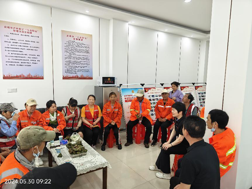 5月30日,应城市总工会依托服务阵地,组织开展“浓情端午,工会相伴”主题文明实践活动,为户外劳动者们送上热气腾腾的粽子和清凉解暑的绿豆汤,让他们共享节日氛围。