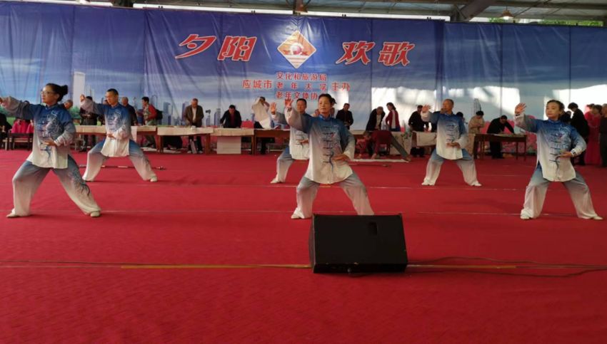 10月11日,由应城市文化和旅游局、应城市老年大学、应城市老年文体协会主办的“九九重阳·夕阳欢歌”主题活动在应城市老年大学举行。应城市武术协会带来的《武韵雄风》武术展演,动作刚劲有力,展示了中华武术的深厚底蕴和独特魅力。老年大学瑜伽班通过一系列优雅瑜伽动作表演,展示了瑜伽健身的独特魅力和对身心健康的积极影响。现场气氛热烈,高潮迭起,充分展现出应城市老年人健康向上、积极乐观的精神面貌。