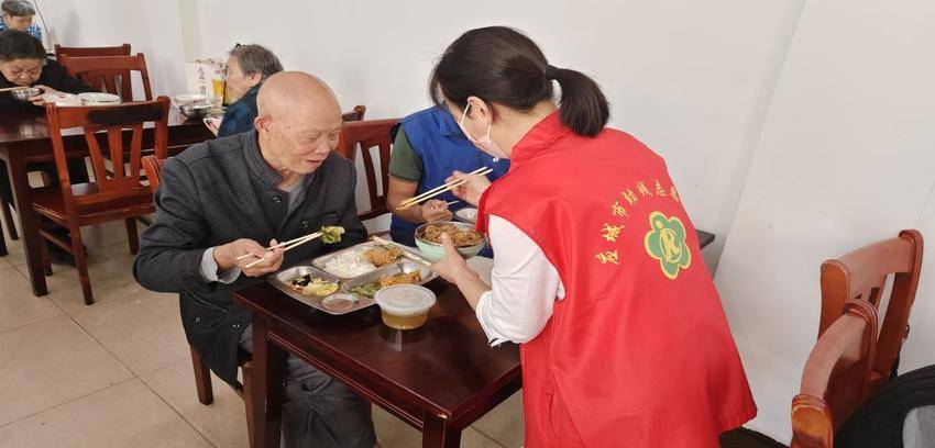 志愿者陪老人们吃爱心午餐