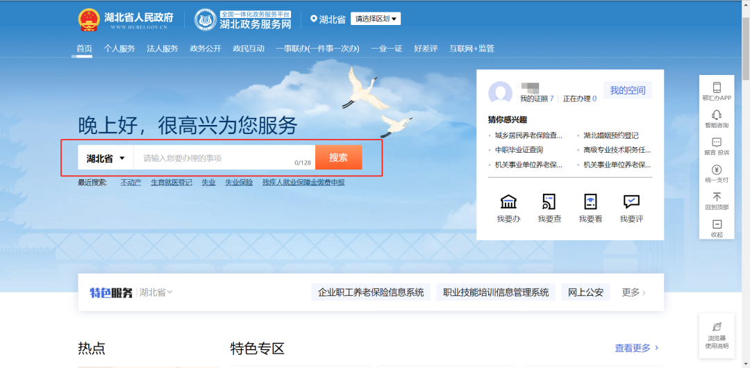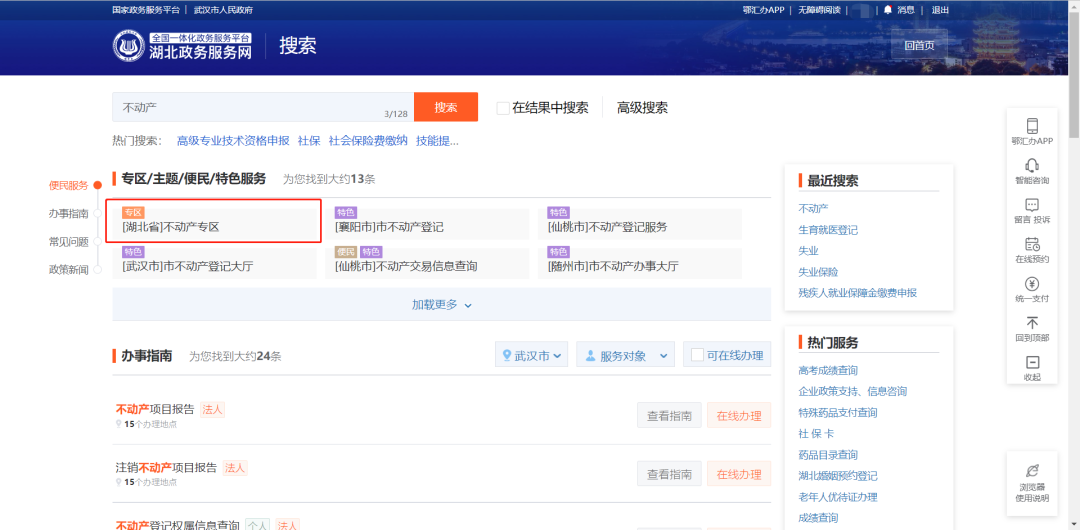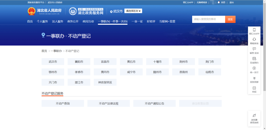 1.打开并登录湖北政务服务网(http://zwfw.hubei.gov.cn/),在首页搜索“不动产”