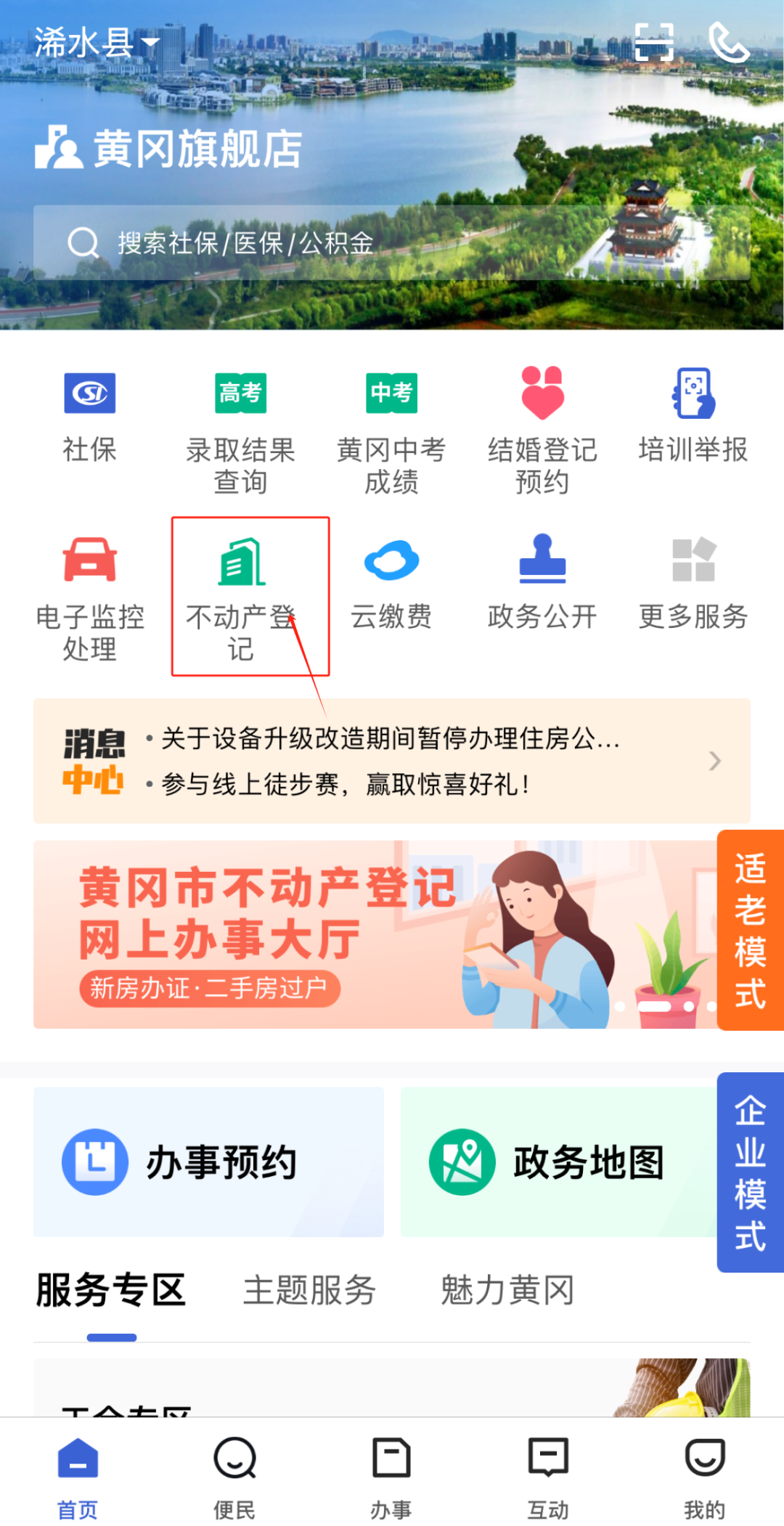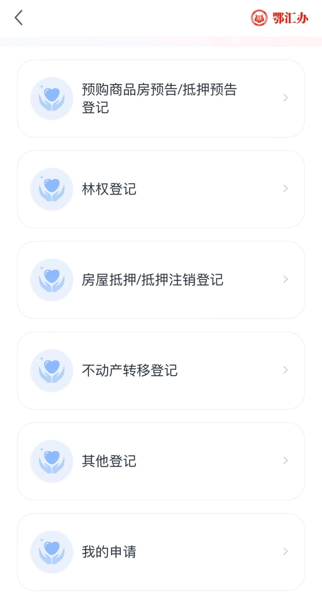 1.打开并登录“鄂汇办”APP,在首页点击“不动产登记”