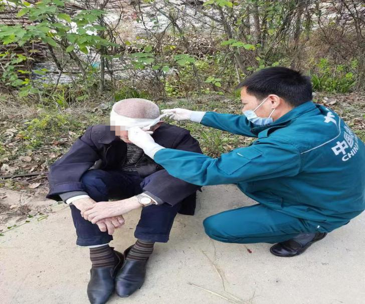 “老人家,您这头部摔了一个口子,我现在先给您进行头部包扎止血,然后再去医院清创缝合。”唐广寿安慰道。“好的好的,谢谢你们了!”老人感谢地点点头。