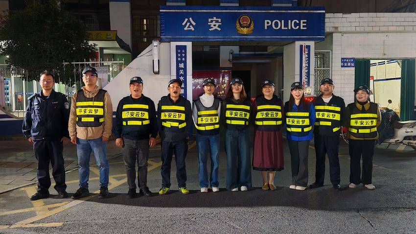 云梦县网友义务巡逻队在城关派出所门前集结,准备出发巡逻。