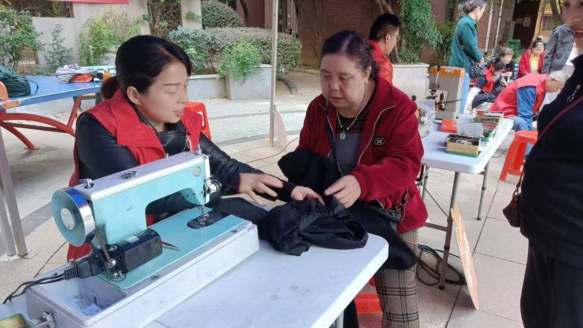 在此前的居民座谈会上,工会小组了解社区职工居民对缝纫修补的需求较大。为此,工会小组与社区工会商议决定通过链接社会资源招募志愿者,定期开展便民缝纫服务,得到了居民们的一致好评。