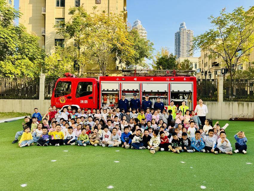 操场上,孩子们通过消防安全知识提问的互动环节,激发了学习兴趣。消防员志愿者向孩子们讲解了初期火灾处置、逃生自救、灭火器使用、装备介绍等安全知识,并请教职工和小朋友代表在已经点燃的火堆上,用干粉灭火器进行了灭火实操。