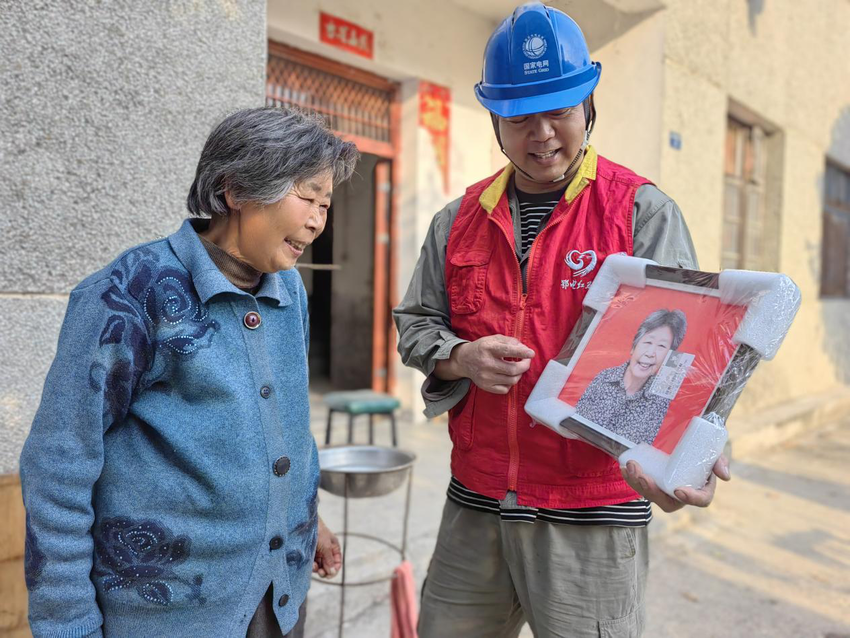 湖北日报客户端讯(通讯员 何艮)11月6日,国网十堰供电公司开发区供电中心花果供电所网格员陈兴林走家入户,亲手将“定格最美夕阳红为乡村老人拍照”活动中为60岁以上村民拍摄的一张张照片,配上相框后,交到了西城开发区郭家村村民的手中。