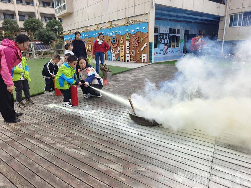 大队宣传员向全体师生讲解了常见火灾隐患的排查、火场自救、如何组织人员逃生等消防安全常识,并就灭火器、消火栓的使用方法和注意事项进行现场指导和演示。
