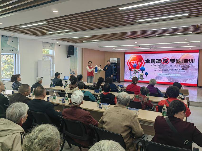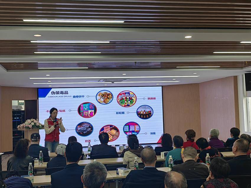 随后,社区警务室杨宇飞警官分析辖区近两年来刑事案件。以真实案例为切入点,严厉打击非法集资,深入剖析电信诈骗惯用套路,告诫居民不贪、不产生邪念,提高居民的识骗、防骗的能力,守好钱袋子。社区戒毒康复中心童晓昕从毒品的历史、识别毒品、容易出现的场所、毒品的包装等方面进行了细致的讲解,巧妙识别“跳跳糖、曲奇饼干、神仙水、电子烟……”多种伪装毒品。现场展示灌装“笑气”,告诫其具有严重的依赖性,强调吸毒对家庭的危害巨大,倡导大家“珍爱生命,远离毒品!”