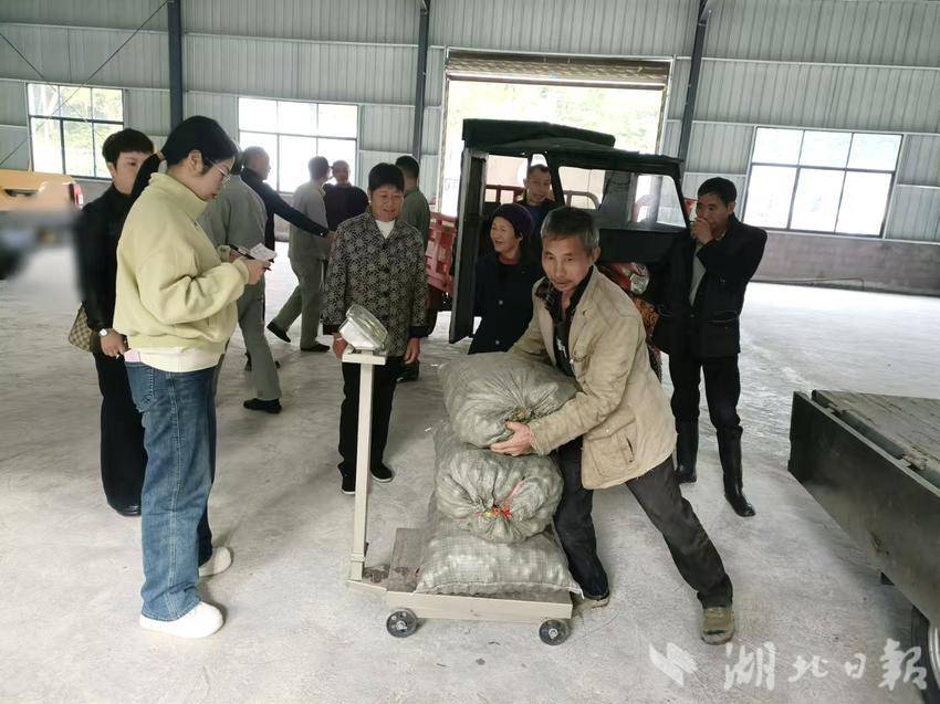 湖北日报客户端讯(通讯员刘艳利、秦子越)近日,咸丰县森兴林业发展有限公司油茶鲜果收购现场,收购人员忙着验收、过秤。