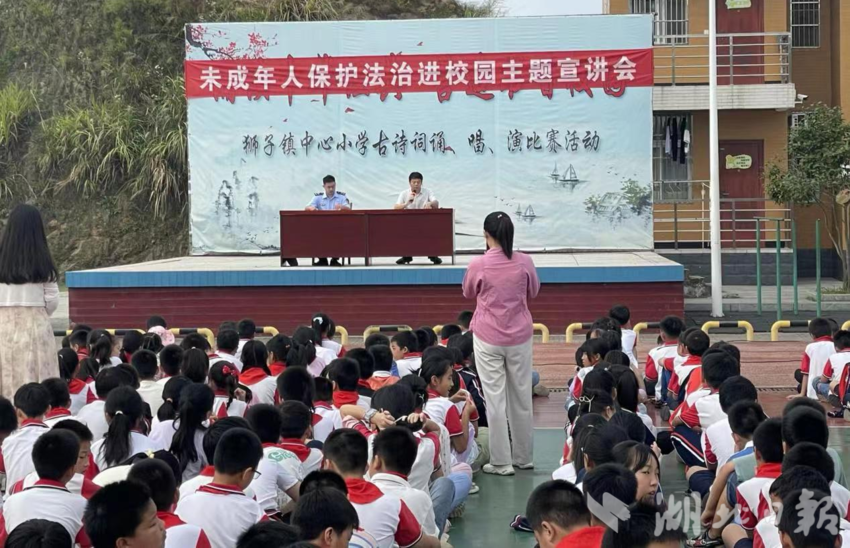 湖北日报客户端讯(通讯员 胡亮、刘星、王剑、胡婷婷)近日,蕲春县狮子镇组织团委、司法、宣传等部门来到吴檀榜小学开展《中华人民共和国未成年人保护法》宣传,通过政策宣讲、以案释法,切实提高小学生的法治意识,提高自我保护能力。