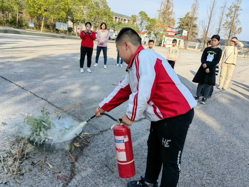 学校保安人员详细介绍了灭火器的种类、使用方法和注意事项,并和孩子一起互动,现场演示了如何正确使用灭火器扑灭火源。师生们纷纷表示,通过这次演示,他们更加熟悉了灭火器的使用方法,提高了应对火灾的能力。