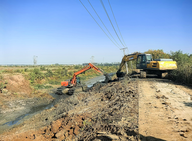 水利工程建设在农业生产发展中发挥着至关重要的作用,东山头抓住枯水季节有利时机,保质保量推进项目建设,此次建设投入近600万元,对二千七830米沟渠进行疏通,并对主干渠道进行硬化,累计清除河道水渠淤泥1.2万余方,有效改善沟渠的水域环境卫生,保障农作物的抗旱用水与灌溉排水,促进农业增产、种植户增收。