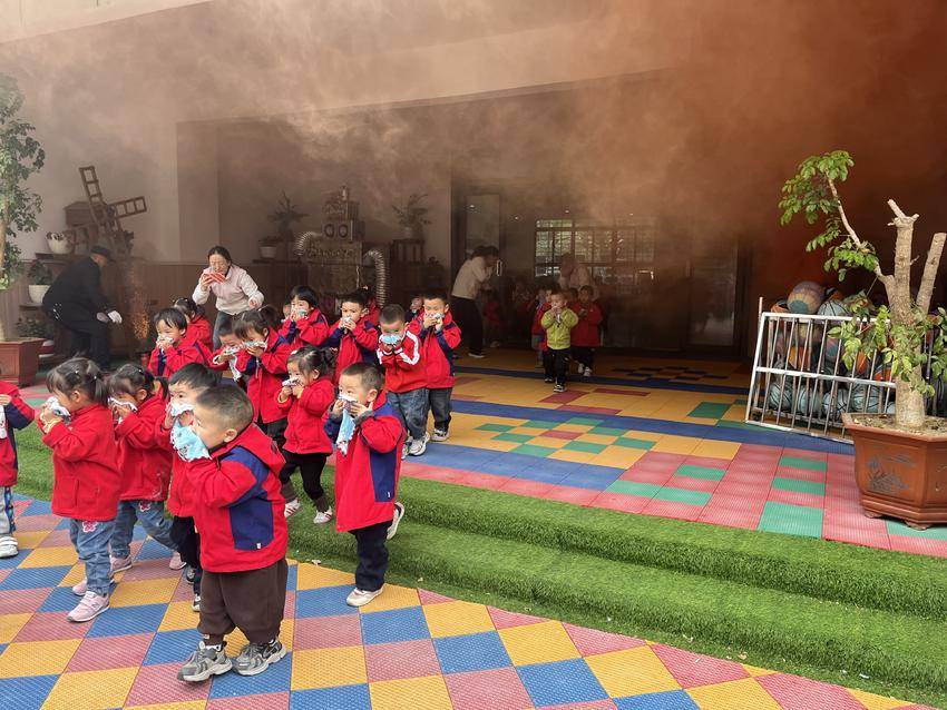 知识课堂上,消防救援人员抓住小朋友活泼、好动的心理,以“理论讲解+互动教学”相结合的方式,把一些与家庭、生活息息相关的消防知识贯穿其中,详细讲解了常见的火源、身边的易燃物、火灾的危害性、火场自救逃生等内容。通过一问一答的方式加深了孩子们对消防安全知识的印象,大大调动了孩子们的学习积极性。其间,孩子们在老师的引导下,开展了逃生疏散演练。孩子们听从指挥,捂住口鼻、弯腰低姿,快速有序地疏散到安全地点,掌握了在危险中迅速逃生、自救、互救的基本方法。