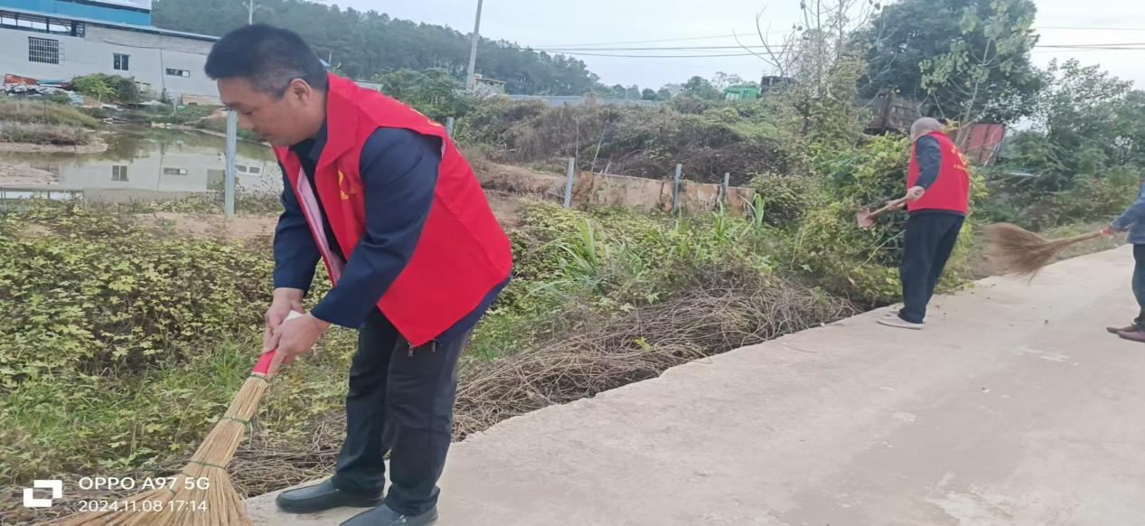 活动当天,由志愿者组成的服务团队身穿统一的红色马甲,手持清洁工具,深入辖区各个角落展开环境卫生清洁工作,认真细致地清理垃圾。大家合理分工,共同协作,把村庄主路上的泥土铲松,并把路边的野草清除。以实际行动为辖区居民营造了舒适、整洁的居住环境。