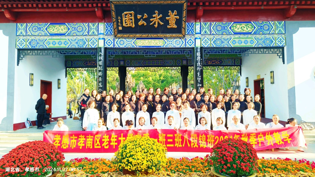 湖北日报客户端讯(通讯员 张瑞芳 丁中秋)11月7日,孝感市孝南区老年大学走秀一班、三班、八段锦班老师学员66人一起,到董永公园开展户外教学活动,轻歌曼舞走秀,行云流水挥拳,游人如织围观,为公园增添异彩纷呈的风景线。