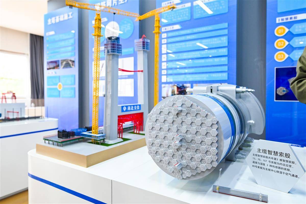 湖北交投双柳桥公司党委书记汪西华形象比喻,把“中央空调”搬进主缆内,通过智能除湿破解世界难题。具体为,将智慧索中央的85号索股替换为的一个除湿通风管道,里面最细的钢丝仅6毫米粗,形成内、外部双通道通气的主缆除湿系统,实现主缆截面通风除湿全覆盖。