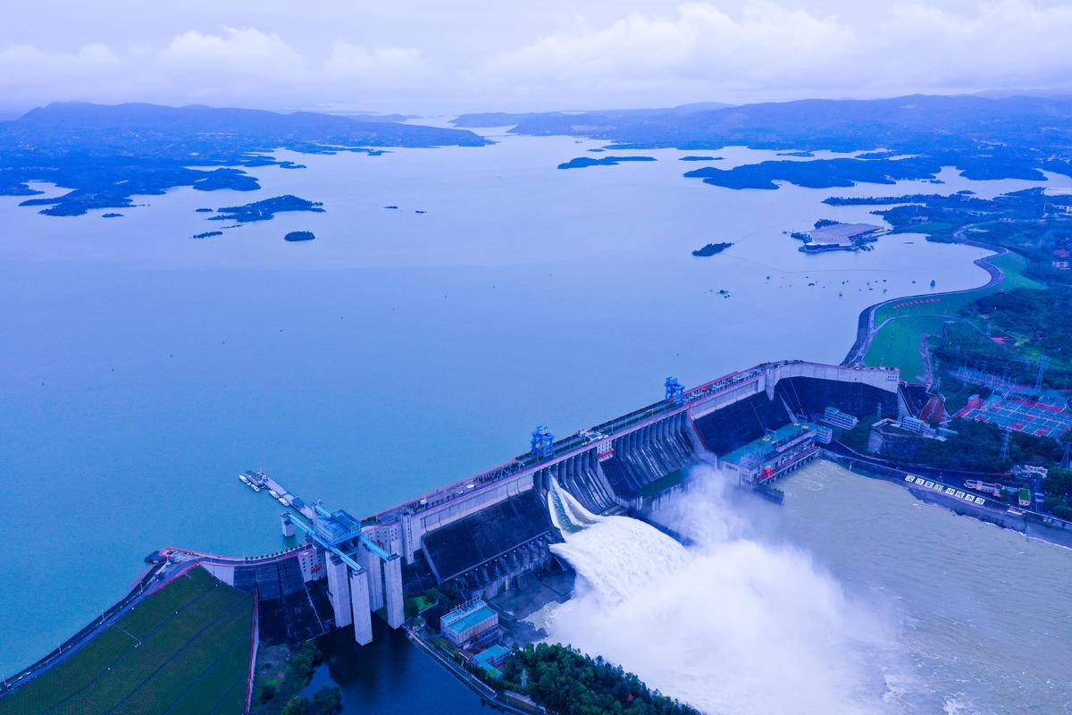 远眺南水北调中线控制性工程丹江口水库大坝。(湖北日报全媒记者田悦 摄)