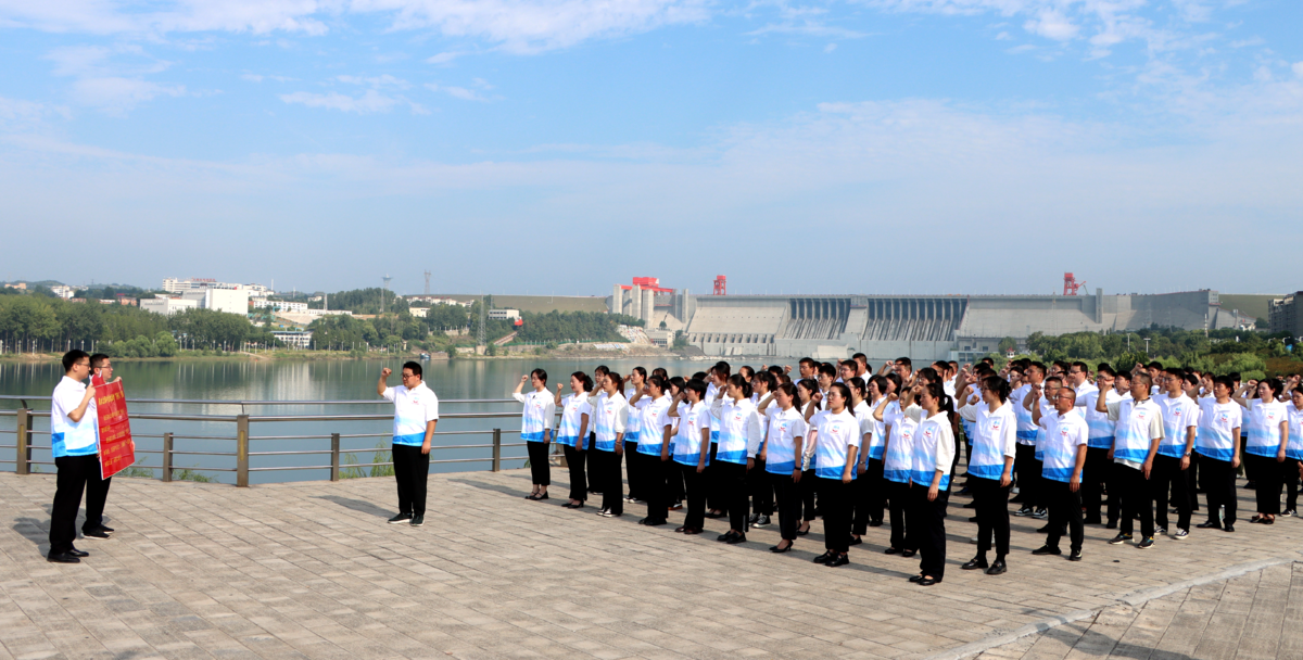 丹江口市“小水滴”志愿者在水资源广场开展守水护水集中宣誓活动。(通讯员 丹轩 摄)