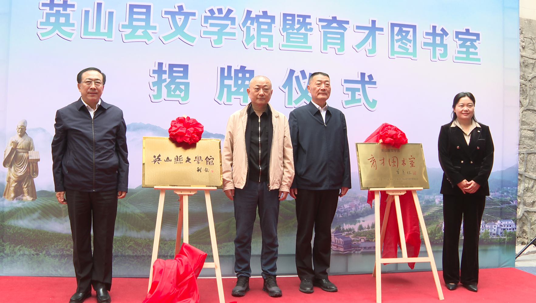活动中,徐贵祥、刘醒龙、古新功、张春梅共同上台为英山县文学馆和育才图书室揭牌,这标志着英山县的文化事业又迈出了坚实的一步。