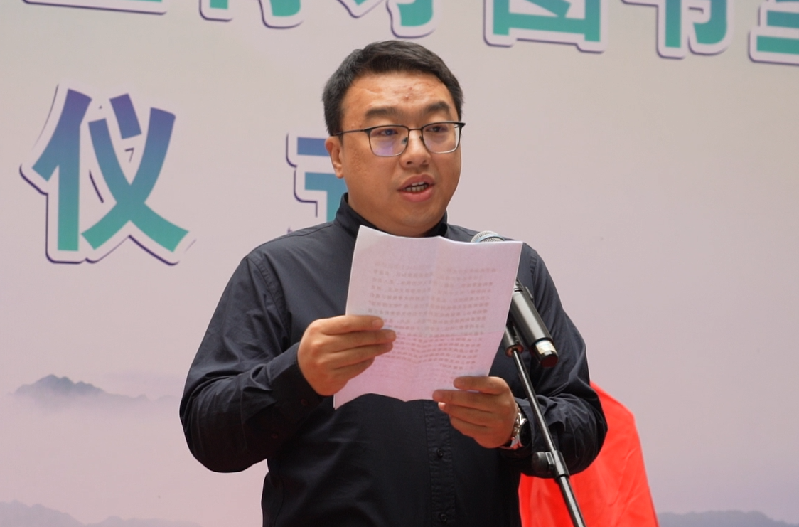 中华文学基金会对外联络处负责人张诺介绍捐建育才图书室相关情况。他表示,将育才图书室工程带到英山,希望能为英山县的孩子们和文学爱好者,提供更多的阅读资源和精神滋养,让这些文化书籍能够助力英山县的文化事业发展,以文学的力量为英山发展赋能。