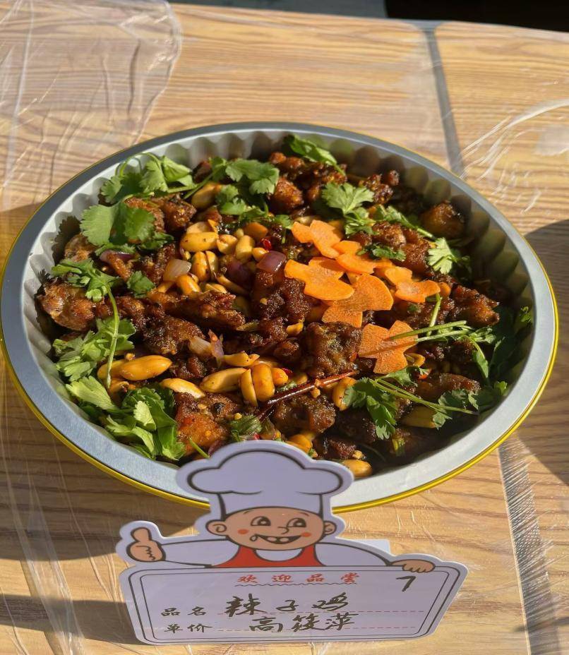 活动现场,菜品展示区成了焦点。一排排菜肴琳琅满目,出自不同家庭、不同店铺,各式各样的美食吸引了广大居民踊跃参与。现场包括排骨藕汤、红烧武昌鱼、荆州锅盔等具有湖北特色的家常菜,更有辣子鸡、特色牛骨头、砂锅羊蹄等“硬菜”。活动还安排了美食评审环节,特邀专职美食评审员对菜品进行打分,随后邀请群众品尝共赏美食,现场氛围如火如荼,居民们井然有序地排队品尝各种美味佳肴,满足味蕾的享受。