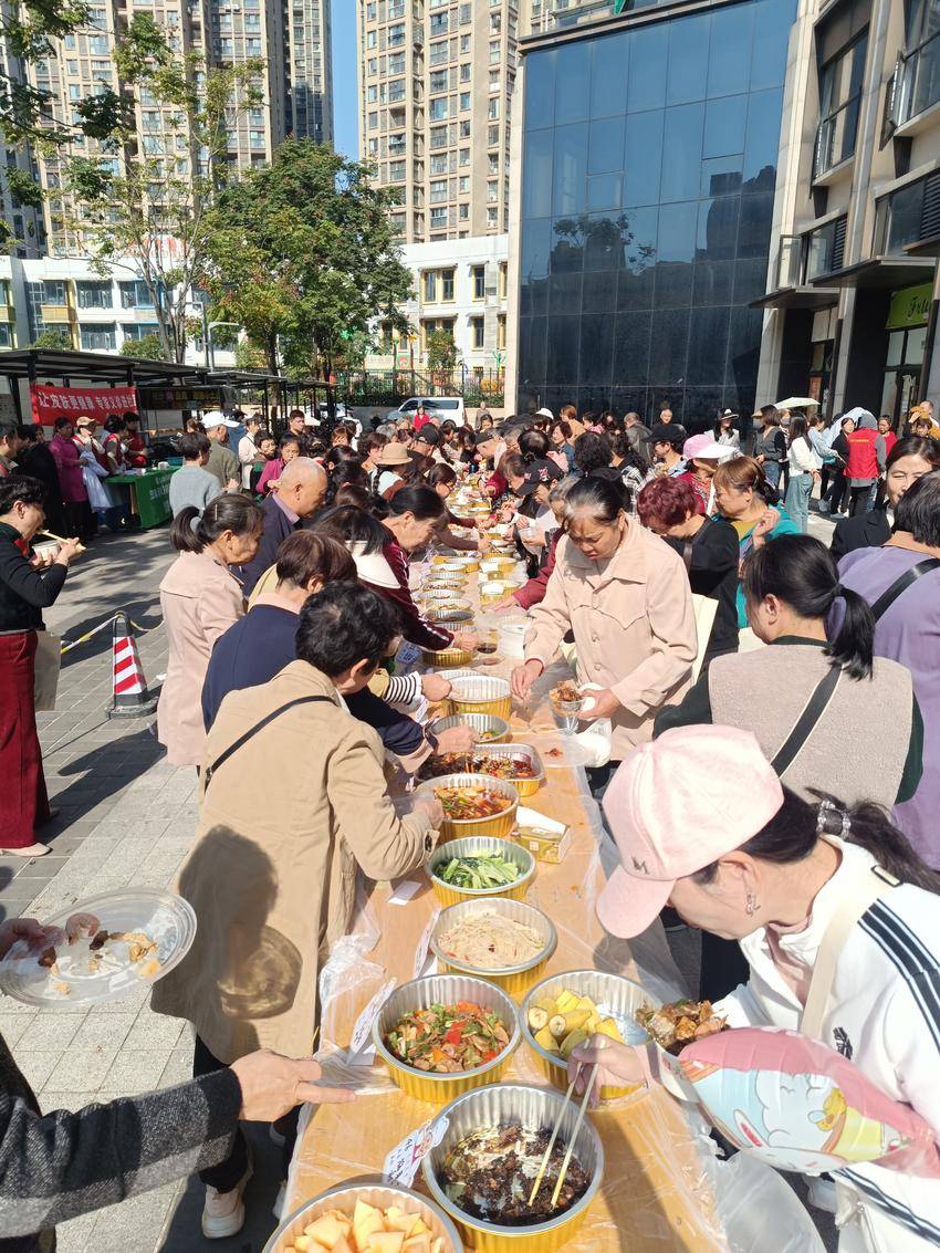 居民们通过自制、自带美食分享的形式,相互交流烹饪技巧和日常生活中的点滴故事,促进了邻里间的感情交流,共同营造了一个和谐温馨的社区环境;通过美食展示、菜品评分、文化交流等环节,打造了一个互助、关爱的邻里平台,活动不仅增强了邻里间的凝聚力,还引导大家走出“小家庭”,融入大家庭。
