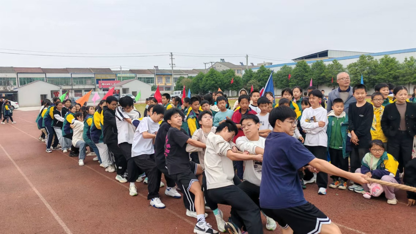趣味项目,欢乐无穷:三人四足比赛中,搭档们喊着整齐的口号,步伐一致向前;袋鼠跳的同学们像可爱的袋鼠,一蹦一跳,欢笑声洒满赛场;赶鸭子过河项目妙趣横生,参赛者们小心翼翼又快速地赶着“鸭子”;拔河比赛则是力量与气势的对决,两边的队伍咬紧牙关、奋力拉扯,助威声震耳欲聋。