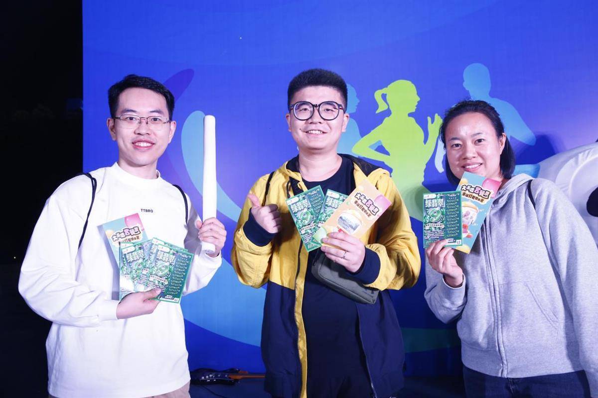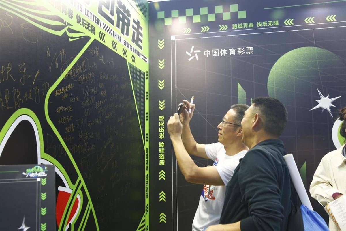 体彩吉祥物乐小星早早现身活动现场,为现场注入幸运氛围。参与者纷纷涌向体彩展示区,手握荧光笔,在幸运互动墙上留下祝福。湖北体彩为每位参与者准备了定制手环。