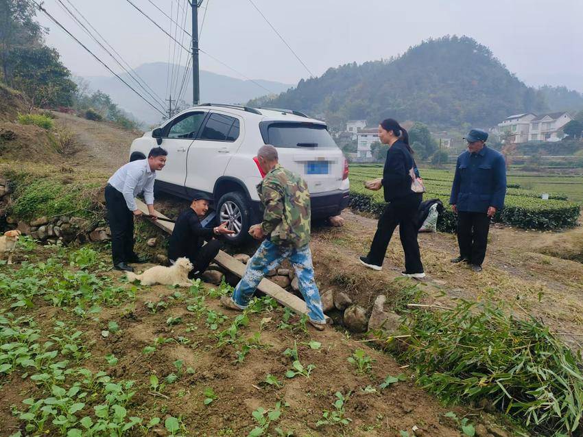 湖北日报客户端讯(通讯员 向春鑫)11月15日下午1时50分,王家畈镇双河桥村村干部江海峰和往常一样驾驶车辆到村委会上班,却发现道路被“堵”。原来一组村民周友琼驾驶车辆操作不慎,导致左后轮悬空无法动弹,引来村民围观。