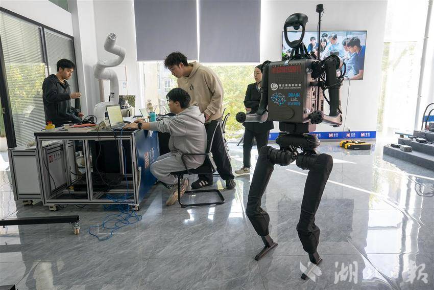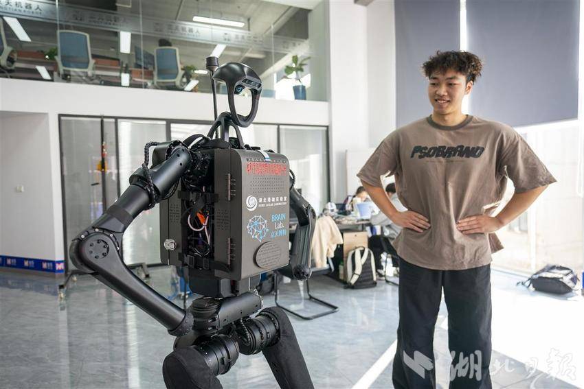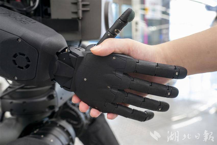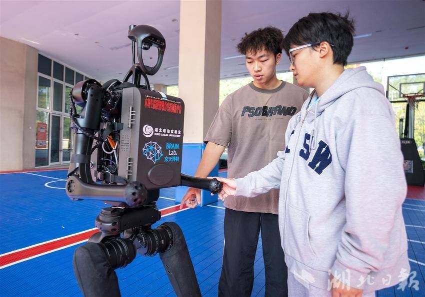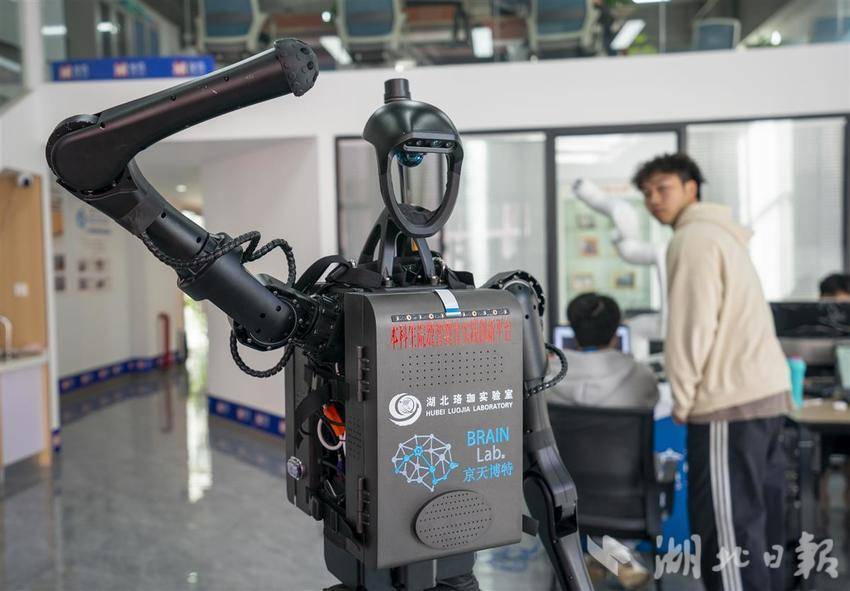 这款装载了光谷造“大脑”的机器人名叫京天博特,身高一米八的它,行走起来十分灵活,转弯、上车一气呵成,行走速度最快可以达到30公里每小时。今年6月开始,武汉大学郭迟教授团队依托湖北珞珈实验室的技术支持给机器人“补大脑”,接入人工智能大模型,让机器人理解人的意图,实现人机对话。同时,以北斗导航为切入点为机器人装上“小脑”,通过装配毫米波雷达等多源传感器,加装室内导航系统,让室内定位精确到厘米级。