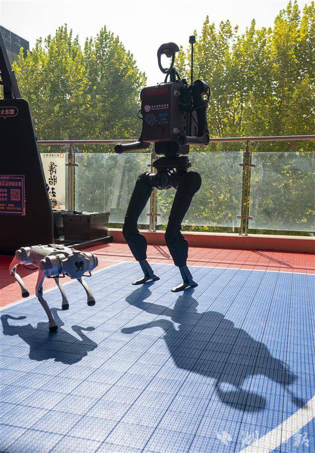 正在测试自主行走的人形机器人和机器狗,引起了一位小朋友的好奇。