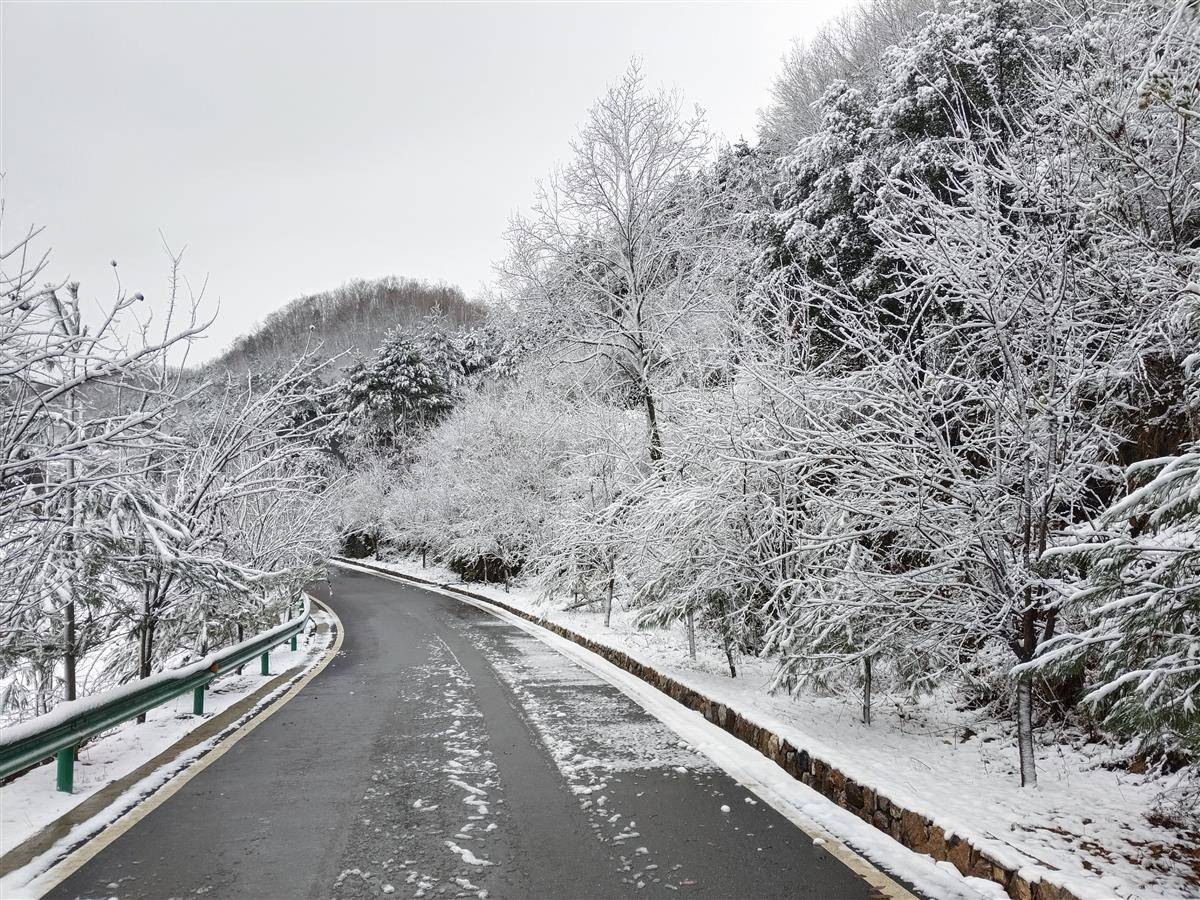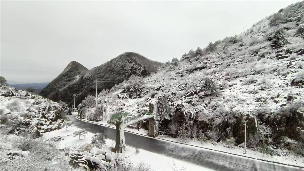 坎子山村村民介绍,低海拔路段积雪不多,山顶上积雪厚达到10厘米左右。为保障道路安全,已安排道路劝导员对来往车辆进行提示疏导。