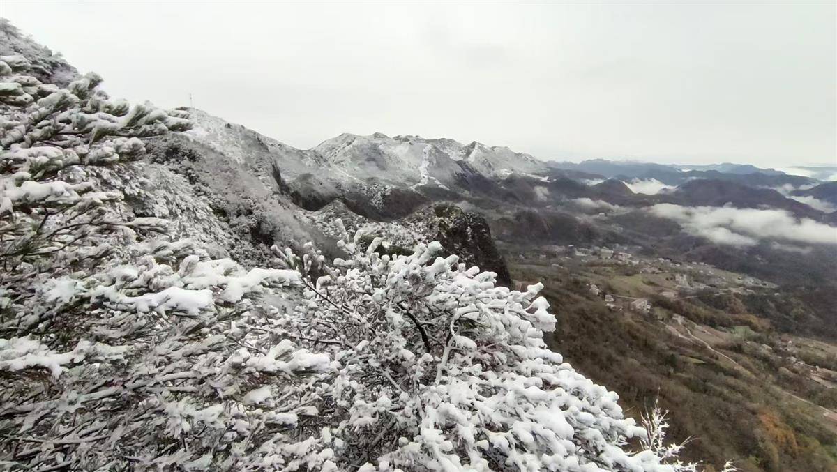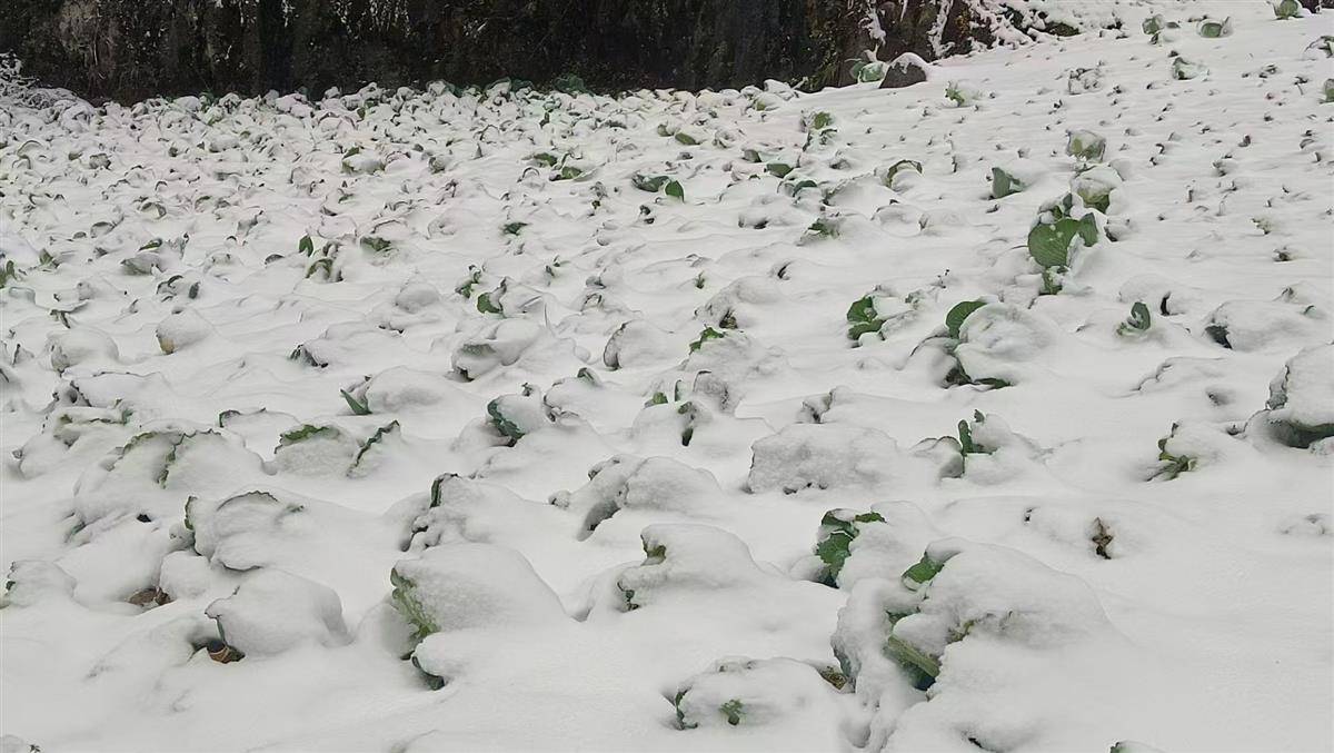 11月17日早晨,坎子山村部分道路已积满厚厚的一层雪。高山包菜地里,积雪盖住了包菜,只露出星星点点的绿色。落在树木上的积雪形成轻盈洁白的树挂,把大山装扮得银装素裹。第一场冬雪给村里带来欢乐,孩子们滚雪球、打雪仗,不亦乐乎。