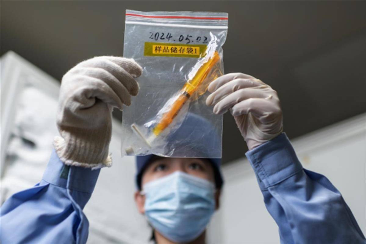 2024年11月4日晚,水生所博士生张宪园观察回收水样样本,并将其储存于超低温保存箱中。(湖北日报全媒记者 任勇 摄)