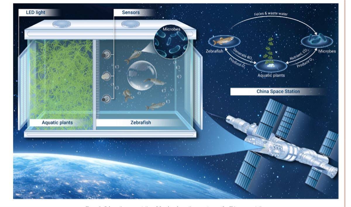“太空鱼缸”巧妙地将生命科学与工程技术结合起来,利用金鱼藻的光合作用特性,为斑马鱼的长期生存打造适宜的环境。该系统是集生物再生生命支持系统、气体平衡控制技术和微生物处理系统于一体的科学实验平台,实现了高度自动化和智能化的生态调节,可以为斑马鱼全生命周期生存提供保障。