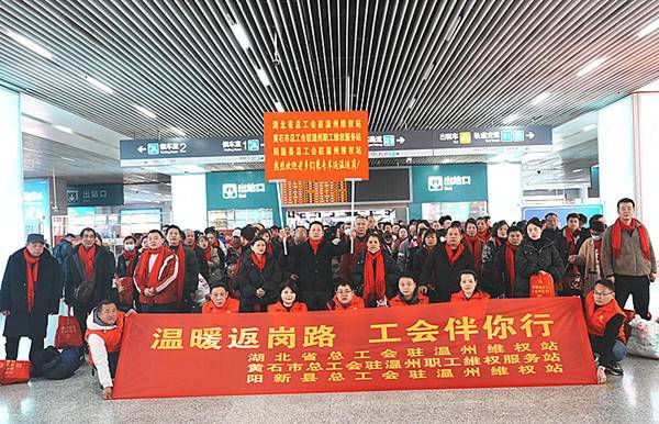恪尽职守,积极作为。通过前期的摸排登记造册,对1218名农民工发放乘车返乡补贴,并赠送春节慰问“大礼包”。2月25日(农历正月十六)为200名外出农民工开设“爱心专列”,农民工乘坐专列到达温州南站后,及时安排6台专车“点对点”接送到厂,并对部分需要转车(误车)的农民工提供必要的食宿,实现了农民工返乡返岗活动有条不紊、无缝对接。