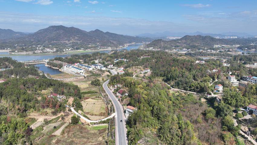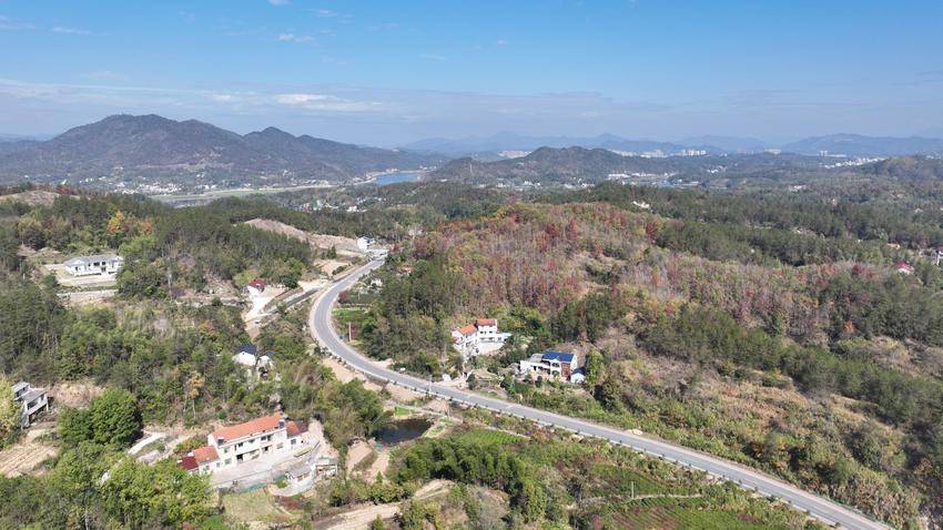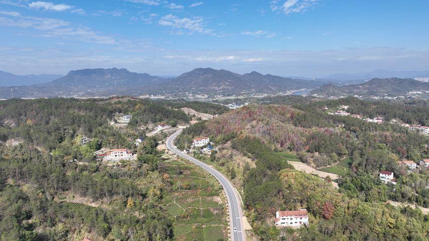 11月18日,英山九大线公路,沿线层林尽染风景如画。近年来,英山县交通部门把推进“四好农村路”与和美乡村建设,打造全域旅游作为巩固脱贫成果与乡村振兴有效衔接的重要举措,有效解决群众出行难、游客进山难的便捷通道。(湖北日报客户端通讯员王丽娟)