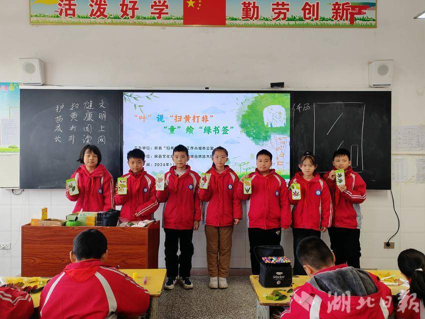湖北日报客户端讯(通讯员 谭陈泽西 王建婷)11月20日,房县“扫黄打非”办联合县文旅市场综合执法大队走进军店镇军店小学,以“叶”说“扫黄打非”,“童”绘“绿书签”为主题,开展了绿书签进校园、护航青少年成长活动,着力营造保护未成年人健康成长的绿色文化环境。