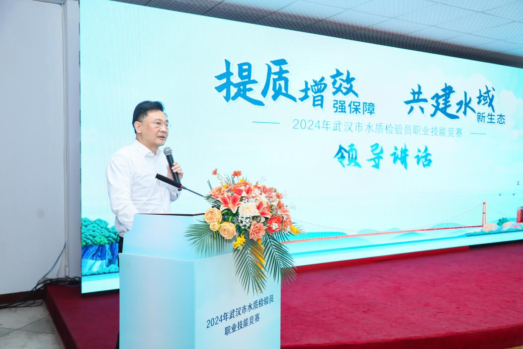 武汉市总工会党组成员、副主席叶林来到决赛现场并讲话。他表示,武汉市水质检验工作者守护着生活饮用水的卫生安全,护卫着江河湖泊、生产用水的水质安全,关系着民生福祉、关系着绿色发展,使命光荣而重大。本次职业技能竞赛被列为2024年全市专项劳动和技能竞赛项目之一,是对武汉市水质检验队伍专业水平的一次大检阅,更是贯彻落实党中央、国务院关于深化产业工人队伍建设改革要求的重要实践。水质检验是产业技术工人集聚的行业,希望相关企事业单位坚持系统导向和问题导向,守正创新,不断激发产业工人推动高质量发展的积极性、主动性和创造性。他强调要大力弘扬劳模精神、劳动精神、工匠精神,要在全社会形成劳动光荣、技能宝贵、创造伟大的时代风尚,营造人人皆可成才、人人尽展其才的良好环境,为加快推动“三个优势转化”、重塑新时代武汉之“重”,全面建成社会主义现代化强国、实现第二个百年奋斗目标做出新的更大贡献!