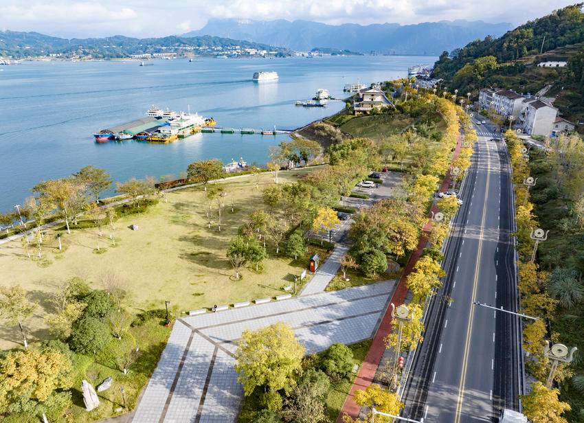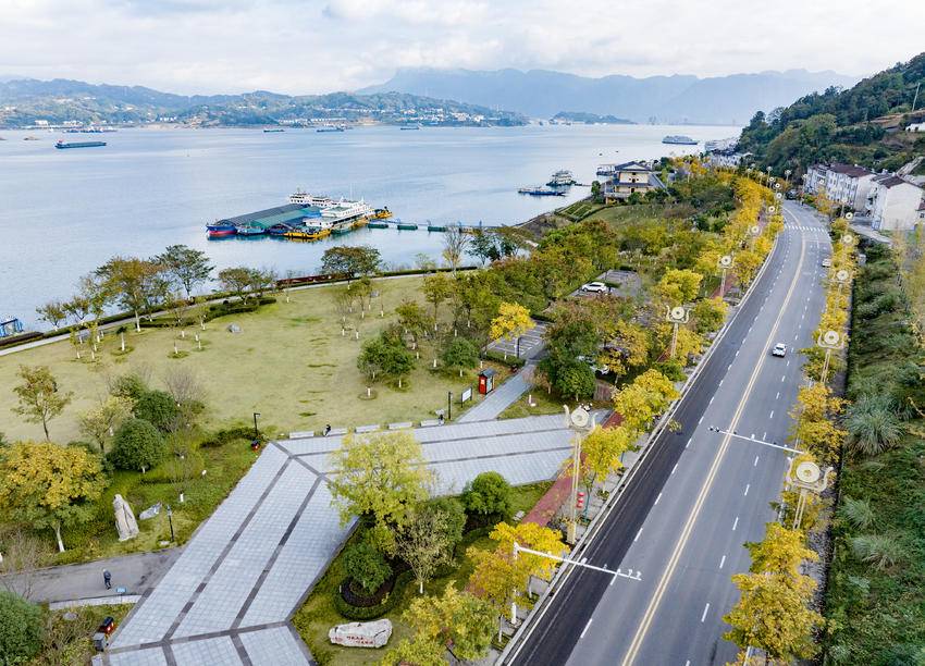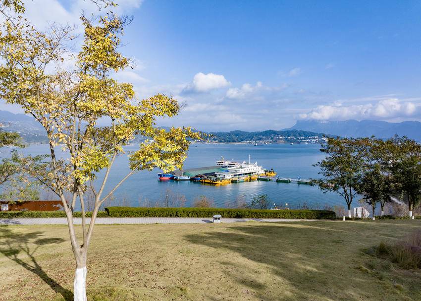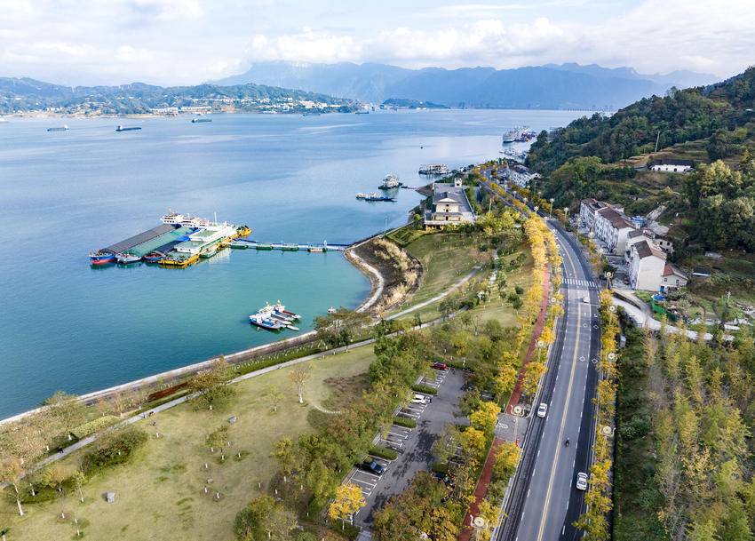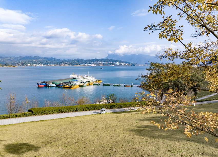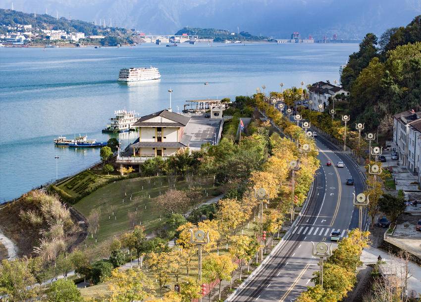 湖北日报客户端讯(通讯员吴承忠)初冬时节,宜昌市秭归县茅坪三峡库岸彩叶斑斓,与一江碧水相互辉映,构成一幅动人的生态图画,美不胜收。图为2024年11月20日,船舶行驶在秭归县茅坪镇坝前江面。