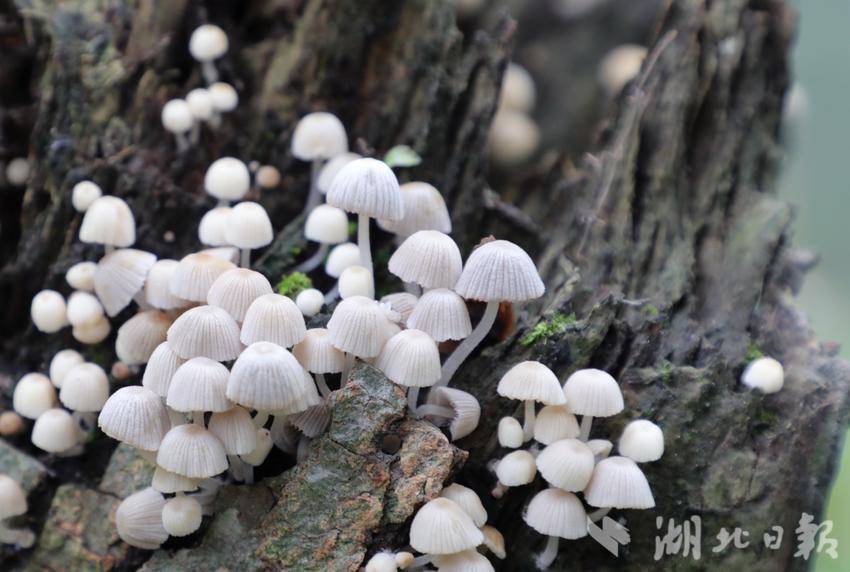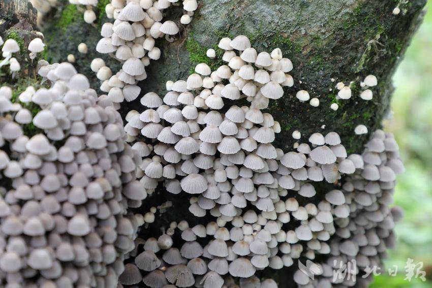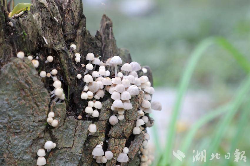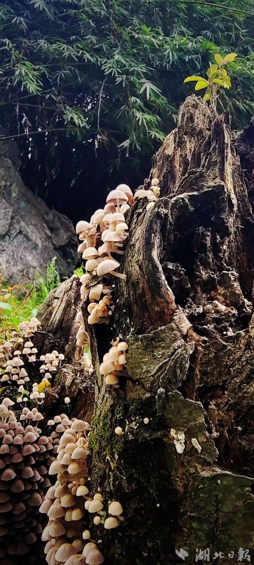 河边一株不知名的老树死了。但雨后枯死的树干上,同样不知名的野生菌,在其上又爆发出惊人的生命力。密密麻麻数不清的小菌,在枯干上顽强地生长,展现出勃勃生机,让人不禁感叹大自然生生不息的力量。(湖北日报客户端通讯员 熊飞)