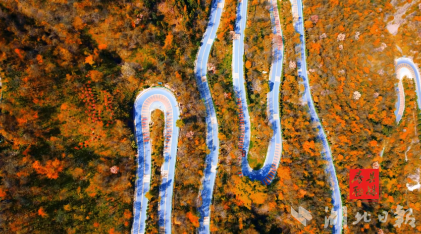 山林间,枫叶如火,银杏叶金黄,层林尽染。