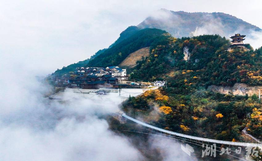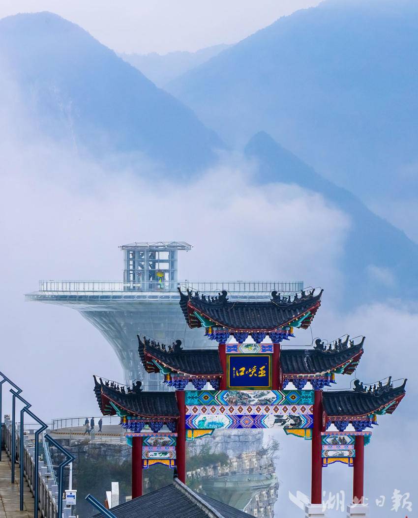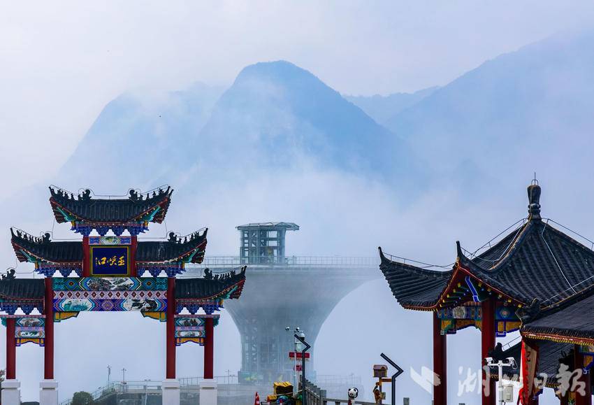 湖北日报客户端讯(通讯员唐传义、范宏霞)11月21日,巴东县巫峡口景区,仿若仙境落凡尘。云雾如轻纱,自峡江深处悠悠升腾,似牛乳般缓缓流淌、翻涌、弥漫。它们时而如絮,轻盈地缠绕在峰峦之间;时而又似浩渺银海,将整个巫峡口淹没其中,诸峰只在这茫茫云海中露出尖尖角,静卧云山之巅的“巫峡天街”在云雾缭绕中宛若天宫,置身其间,令人心醉神迷。